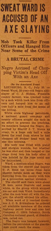 The bold and striking banner headline literally “leaps” out at you: “NORTH CAROLINA MOB HANG A NEGRO.”